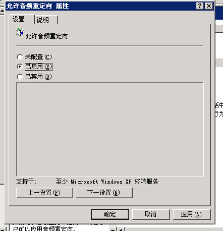 一部分客戶需要能聽到遠程服務器的聲音,可以開啟音頻重定向解決這個問題。